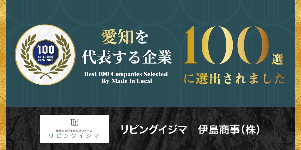 このたび、伊島商事株式会社(リビングイジマ)は「愛知を代表する企業100選」に2年連続で選出いただきました。