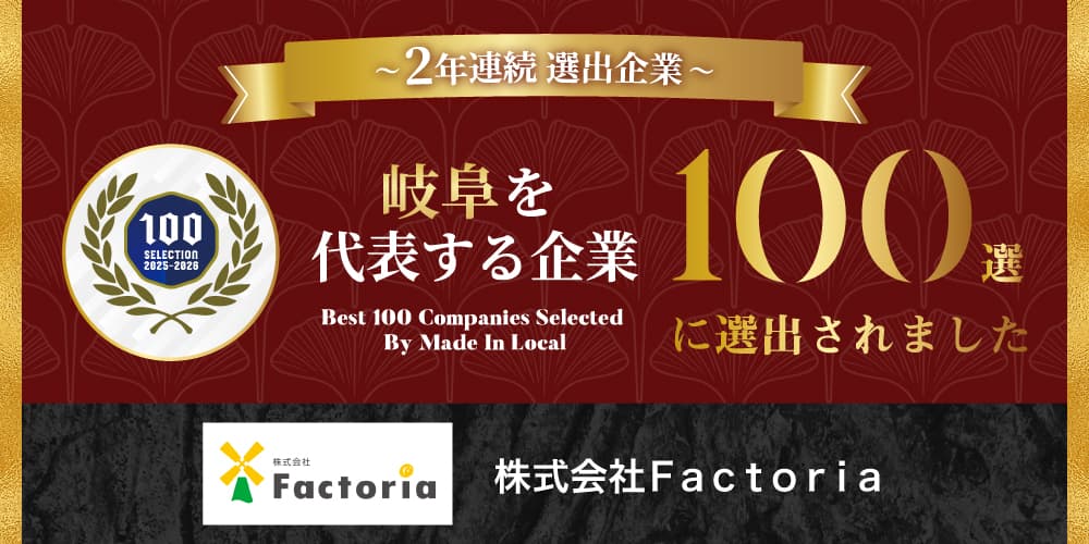 株式会社Factoria(ファクトリア、所在地:岐阜県海津市、代表取締役:河合史将)は地方創生メディアMade In Localにおきまして、「岐阜を代表する企業100選」に2年連続で選出されました。