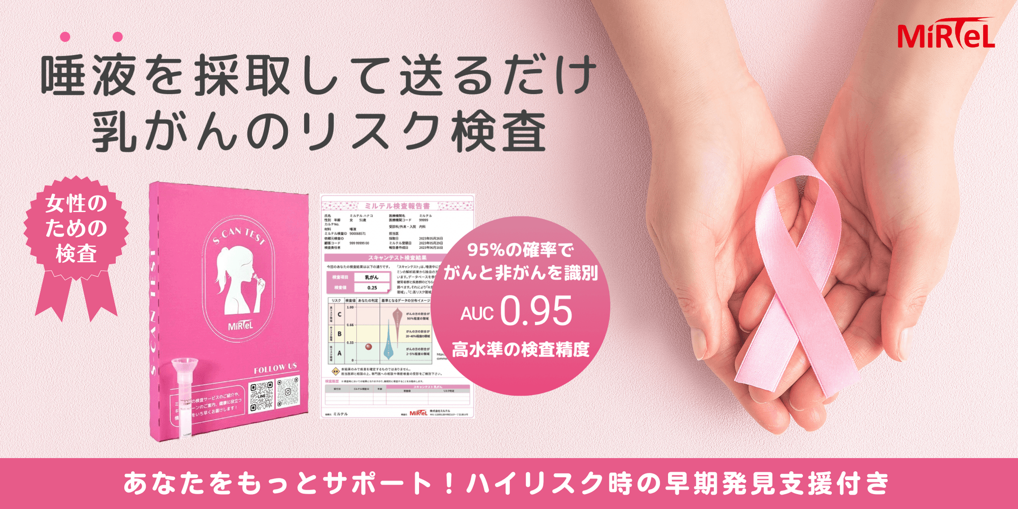 株式会社ミルテル(本社:広島県広島市、代表取締役社長:加藤 俊也 以下、ミルテル)は、乳がんで苦しむ女性を1人でも減らすことができるよう、乳がん検診のきっかけ作りをサポートしたいという思いから、LINE完結型の乳がんリスク検査「スキャンテスト 乳がん」の検査結果がハイリスクの方で、ミルテルに乳がん検診の診断結果をご提供いただいた方に検診費用相当額(一律1万円)をお支払いする、早期発見支援付きサービス「スキャンテスト 乳がん ハイリスクサポート+」の販売を開始いたしました。