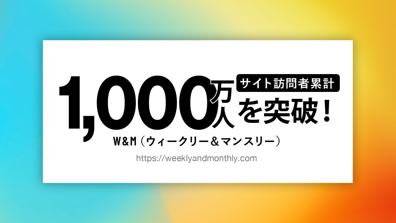 2025年10月、全国のウィークリー・マンスリーマンション総合情報サイト「W&M(ウィークリー&マンスリー)」のサイト訪問者数が、2019年7月正式リリースより累計1,000万人を突破したことをお知らせいたします。