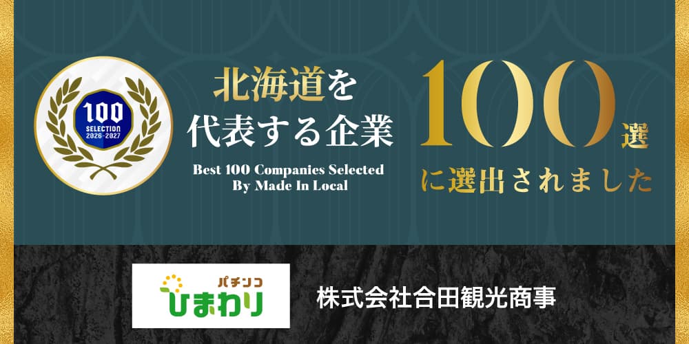 北海道・東北地方でパチンコホール「ひまわり」を32店舗展開している株式会社合田観光商事(ゴウダカンコウショウジ)、本社:北海道札幌市、代表取締役:合田高丸)が2026年3月1日「北海道を代表する企業100選」に選出されました。