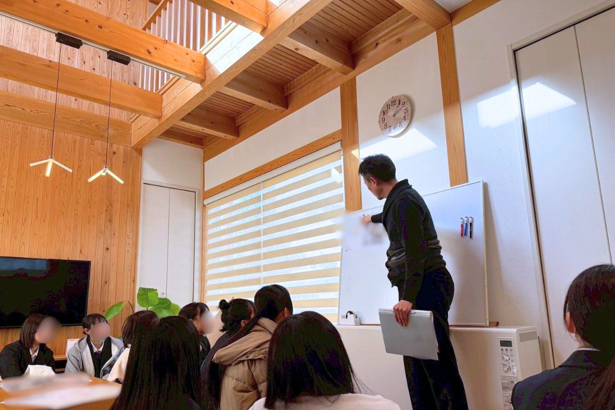 その後、生徒の皆さんを十津川の家 高槻住宅展示場へ招き、実際の建物を体感してもらいながら、