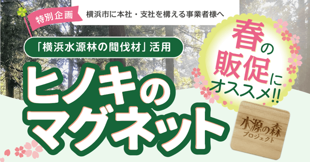 株式会社こもれ陽(コモレビ、所在地(神奈川県横浜市)、代表取締役社長:市川哲哉)は、「横浜水源林の間伐材」を活用した「ヒノキのマグネット」の販売を、【数量限定1万個】で展開します。