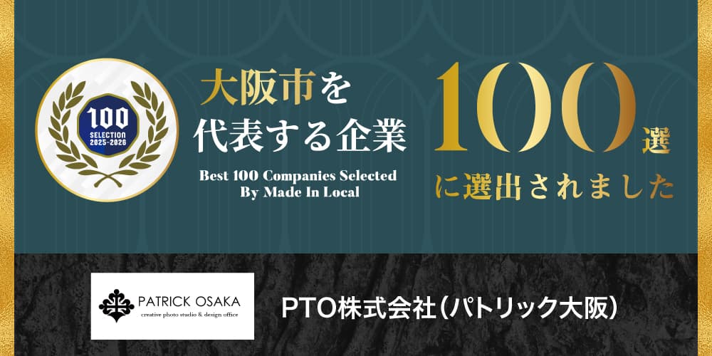 PTO株式会社(パトリック大阪)が大阪市を代表する企業100選に選出されました!選出を記念し、撮影納品枚数アップキャンペーンを実施!
