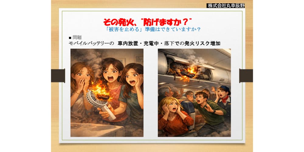 特に物流や製造業では、熱中症対策など日常的にモバイルバッテリーを使用する場面が多く、小さなリスクが大きな事故につながる可能性も否定できません。