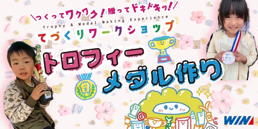 トロフィー・メダル 作りに幼稚園から小学生のこども連れのご家族が訪れ、