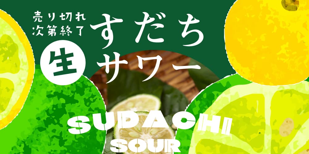 今回は、無くなり次第終了である生すだちサワーをご紹介させていただきました。