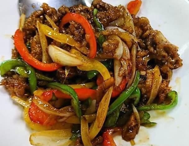 赤・緑・黄の彩りが豊かな青椒肉絲。