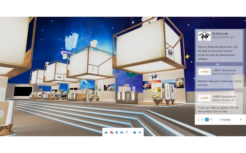 自社開発のメタバースイベントプラットフォームは単なる商品展示にとどまらず、会場内でバイヤーとサプライヤーが直接コミュニケーションをとれる機能を付帯しており、こちらは特許出願中です。国内においては農林水産省が推進する食品輸出プロジェクト「GFP」にも参画し、多くの食品企業との接点を獲得、またイベント回数をこなすにつれ高まる日本食品メタ展「JVREX Food」の海外認知も弊社事業の特徴です。