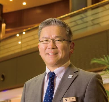 1981年のホテル開業時入社の1期生として、宿泊部門でキャリアをスタートする。宿泊部長を経て2015年取締役に就任。その後、本社営業部長、料飲部長、事業部長などを歴任し、2019年4月に総支配人に就任。