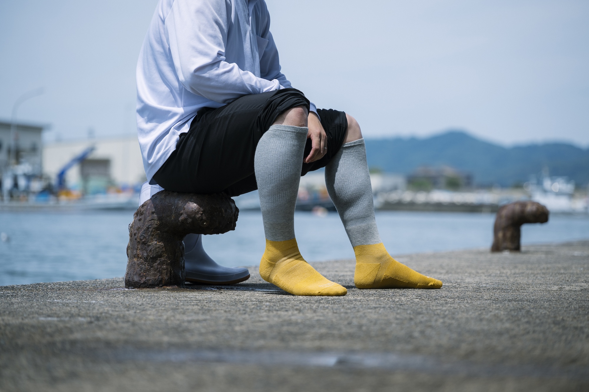 企業が発展していくためには、まず地域に愛される存在であることが重要だと私たちは考えています。海に面する富山県では水産業が盛んで、富山湾で働く多くの漁師の方々がいます。夏は気温40度近い船上、冬は氷点下の日もある過酷な環境下で働く彼らには、履いた直後は暖かくても、汗が冷えて逆に足を冷やしてしまう。また冬場は長靴の中で靴下がずれても、その場で即座に直すことができない状態で1日中過ごさなければならないなど、常に足の悩みがありました。そこで「必要な人へ必要なものを届ける」という開発テーマのもと、富山・新湊で白エビ漁を行うサステナブルな漁師団体に協力いただき、「過酷を乗り越える漁師のソックス」を開発しました。現場に足を運び、試作と改良を重ね、漁師の足の悩みに寄り添って完成したこの靴下は、まさに“富山発”のプロダクトです。このように開発を通して地域の仕事を深く理解し、課題を共に解決していく取り組みを今後も展開していきたいと考えています