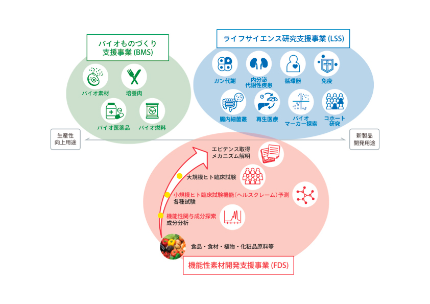 山形県鶴岡市は慶應義塾大学先端生命科学研究所を誘致し、世界最先端の研究拠点づくりを進めてきました。こうしたなかで、研究成果を地域発展につなげる起爆剤として誕生したのが、ヒューマン・メタボローム・テクノロジーズ株式会社です。2003年の創業当時はスタートアップ企業が注目される時代であり、弊社は従来の技術では捉えきれなかった体内物質をメタボローム解析で明らかにすることで、この技術の社会実装に挑戦しています。いわゆる「メタボリックシンドローム(脂質異常)」のイメージが強い「メタボ」という言葉は、生物の代謝全体を表しており、これらを解析する技術で(製薬企業や健康食品会社、大学研修機関の)新薬・新サービスの創出を支え、厚い信頼を得ています。