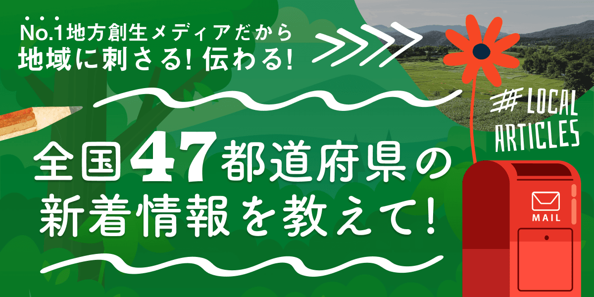 Made In Localでは、全国の地域情報を大々的に募集してまいります。地域で活躍されている団体様や企業様の活動等、プレスリリースの基となる情報をご提供いただくことにより、日本中の地方創生の活動を発信してまいります。詳細は下記応募フォームをご覧ください。