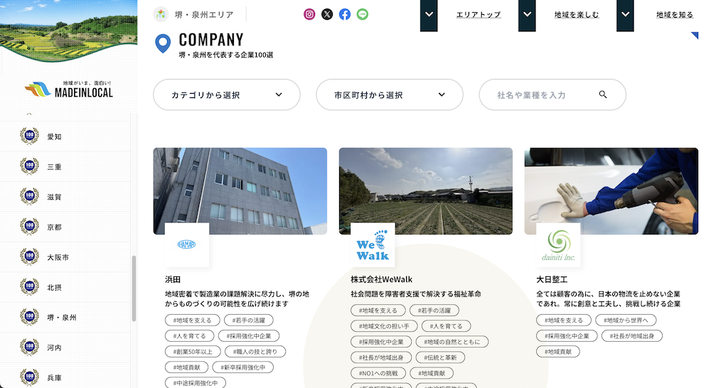なかでも、日本一の地方創生メディア「Made In Local」のメインコンテンツ「地域を代表する企業100選」では、中小・ベンチャー・大企業と規模を問わず、地域の第一想起となるような企業を選ばせていただいています。